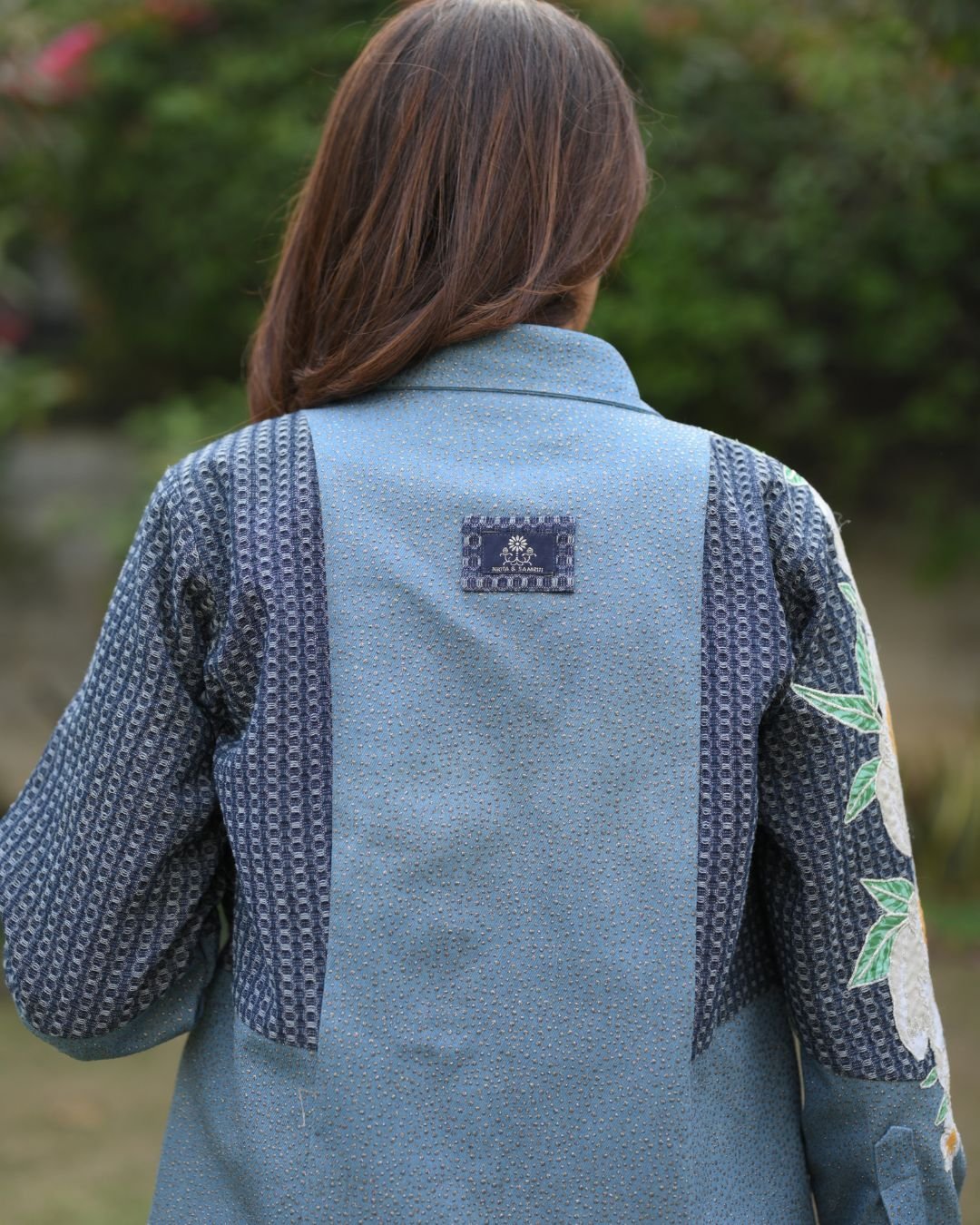 A chic and versatile denim shirt crafted for effortless everyday elegance. The Daffodil Denim Shirt features intricate applique work enhanced with fine dori detailing, creating a refined and stylish look. With a comfortable 28-inch length, it offers a flattering fit suitable for both casual and semi-formal styling.