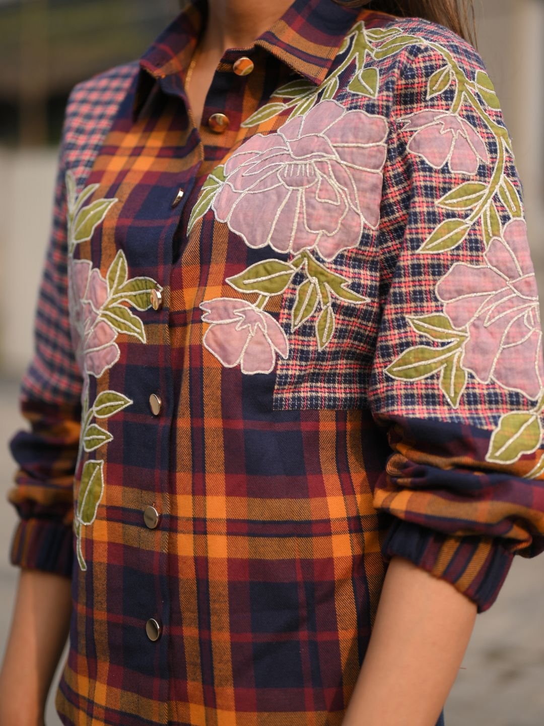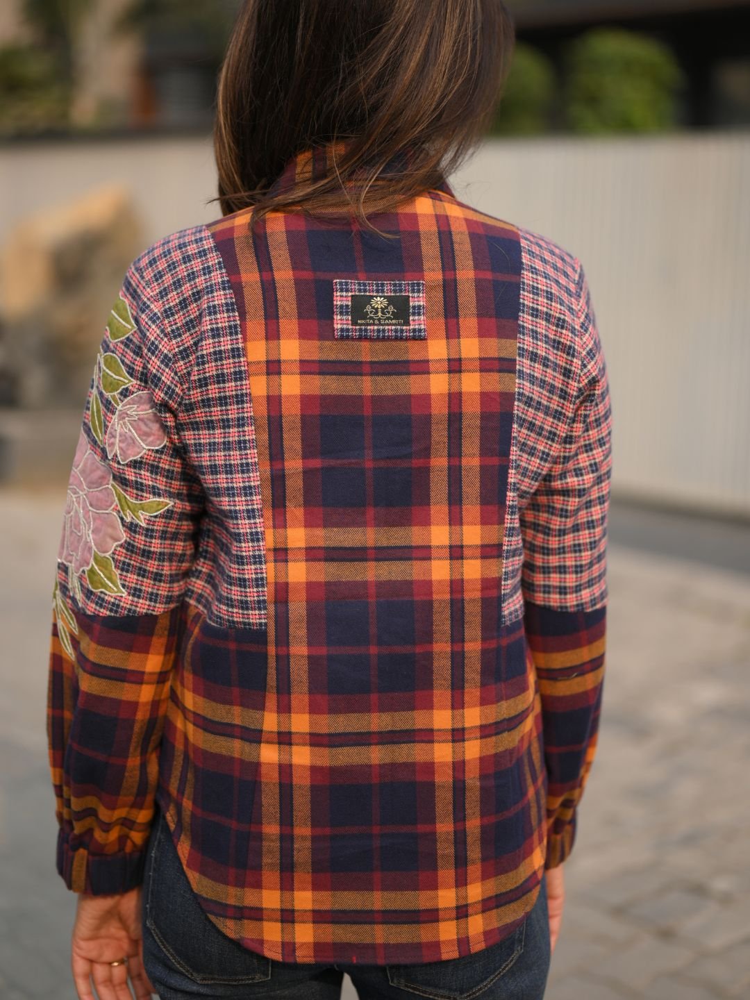 The Huffle Check Shirt combines everyday comfort with refined craftsmanship. Made from soft twill cotton, it features a timeless check pattern elevated with metallic buttons, organza accents, and silver dori appliqué work. Designed for versatility, this shirt is ideal for casual days and smart-casual styling with a subtle statement.