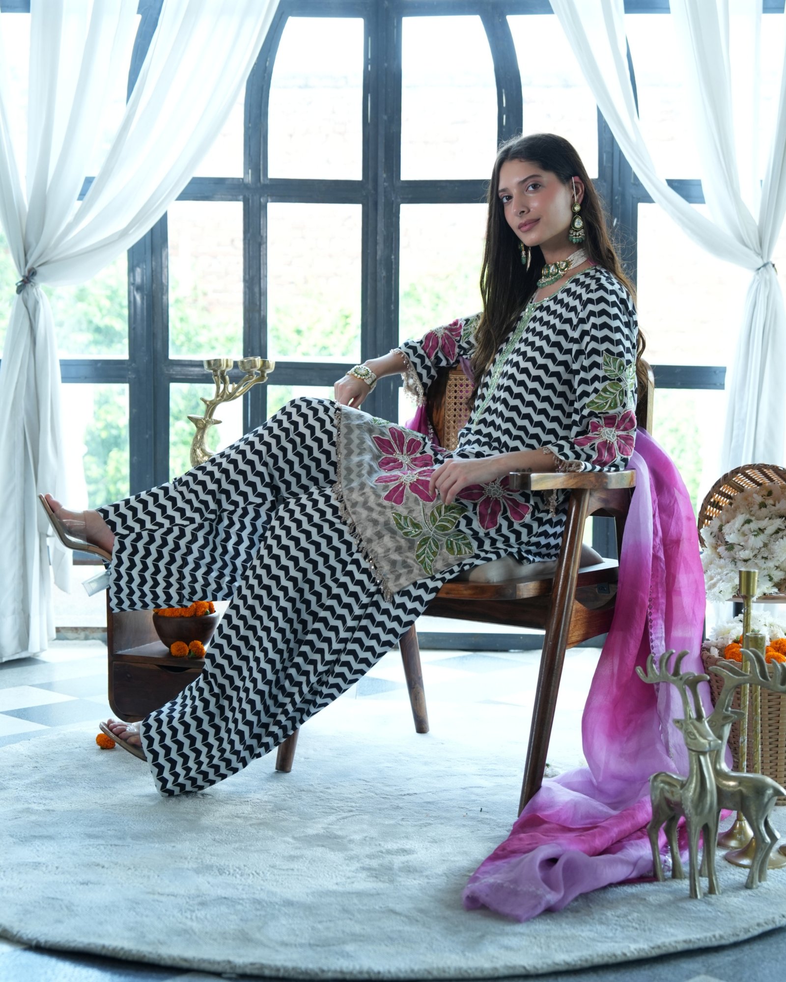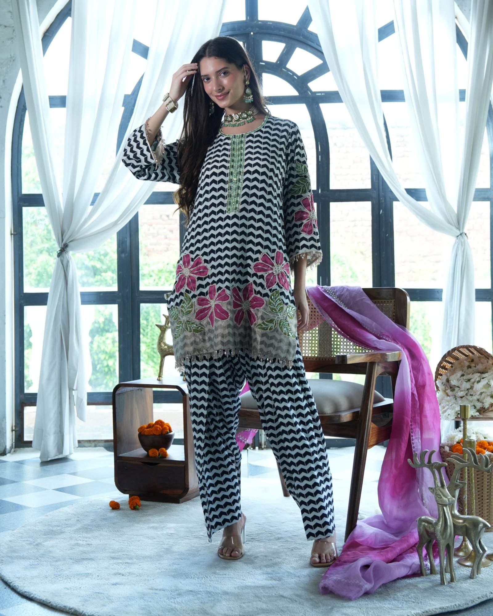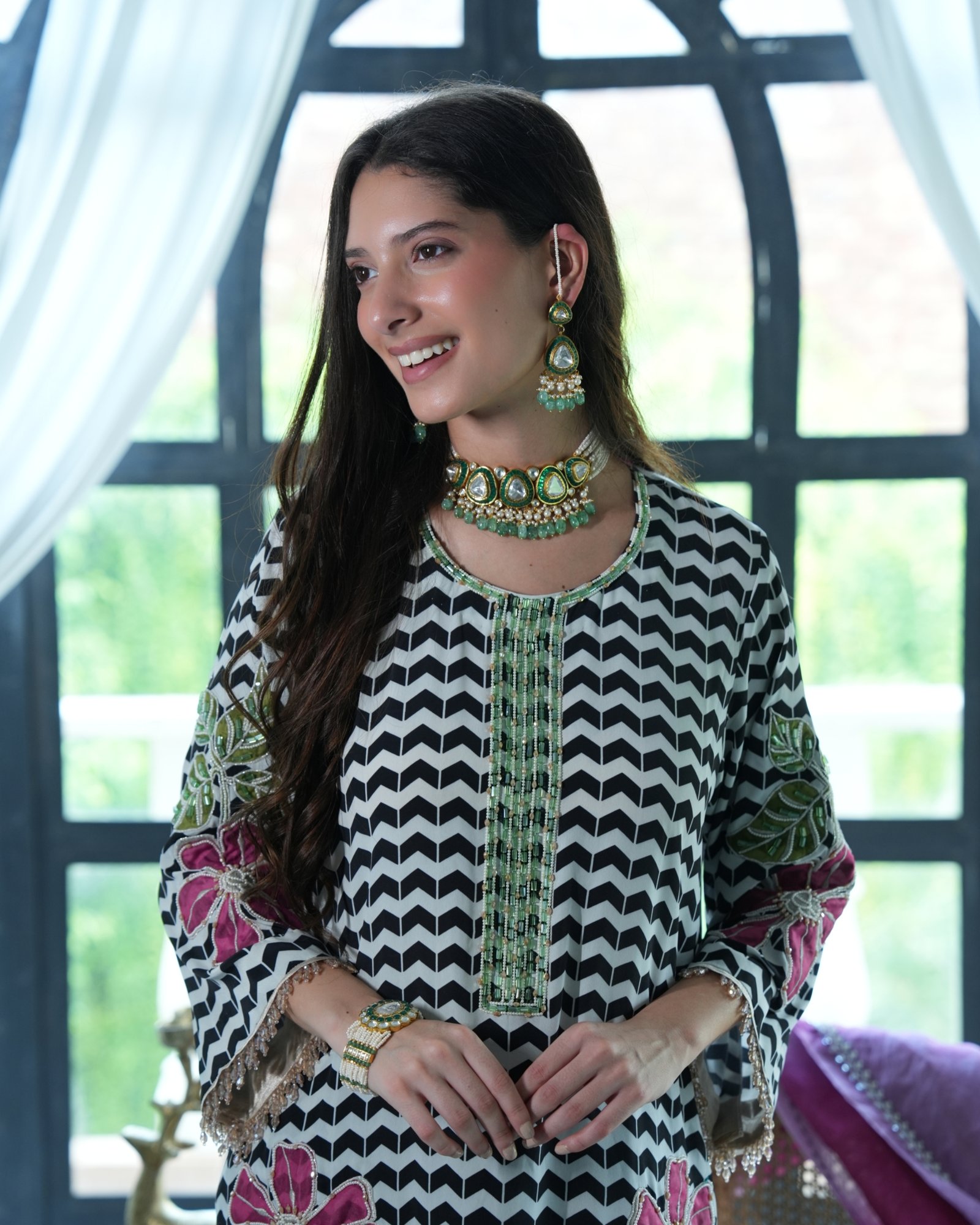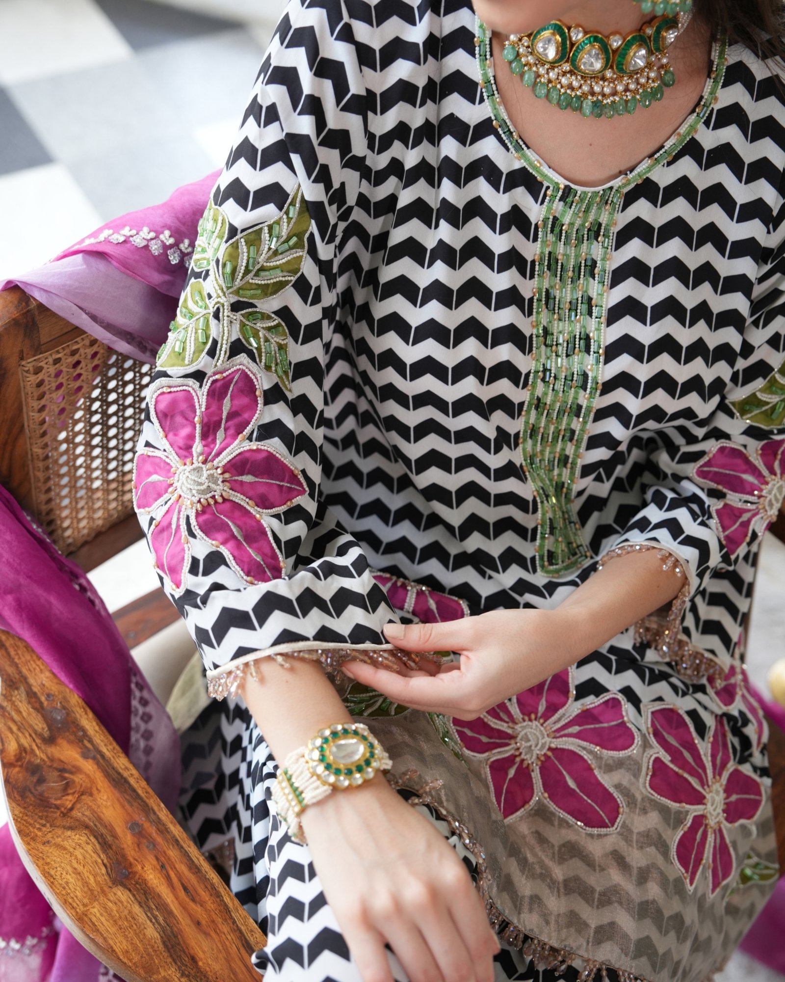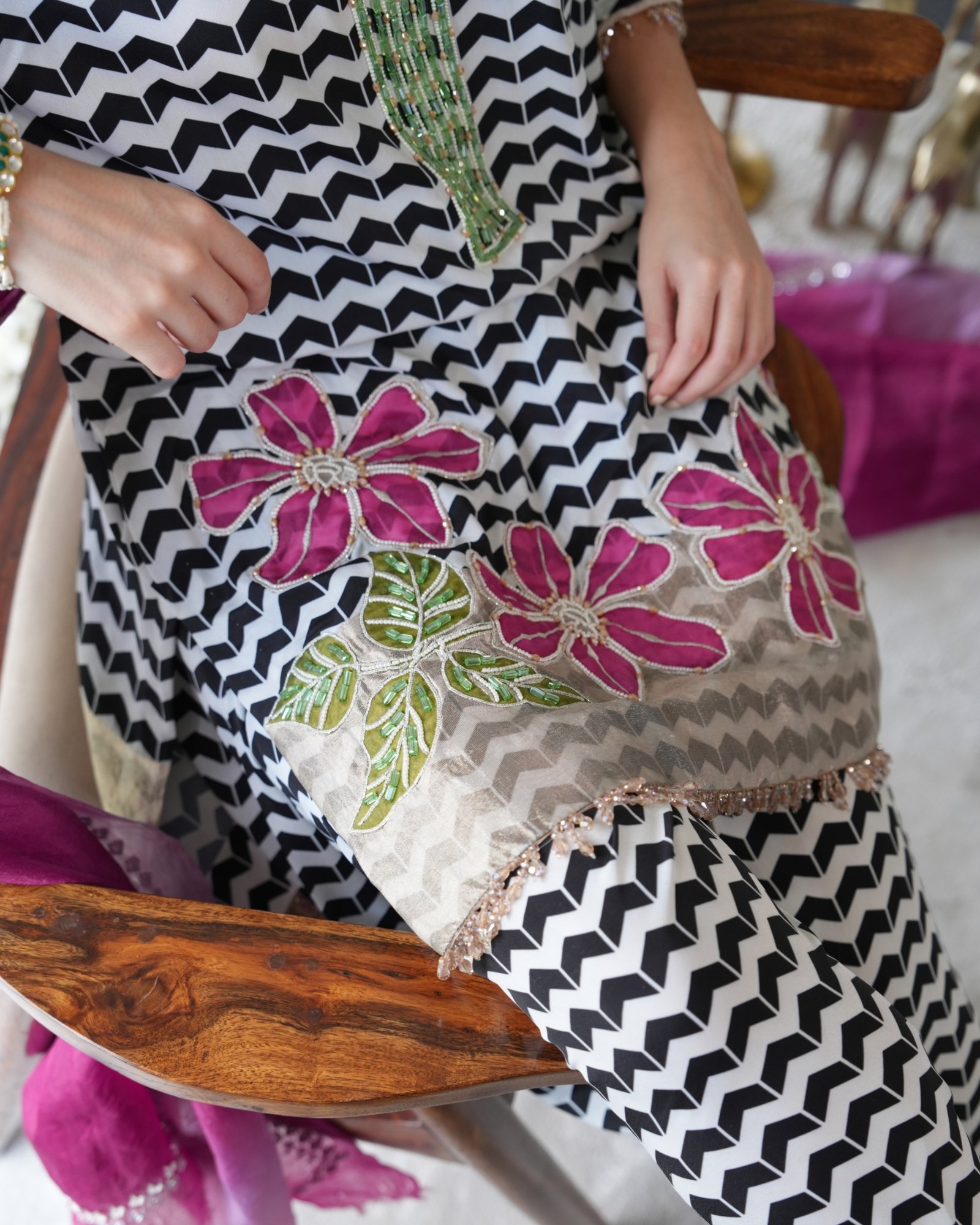 • Comes with a beautifully tailored farshi salwar and complementing dupatta