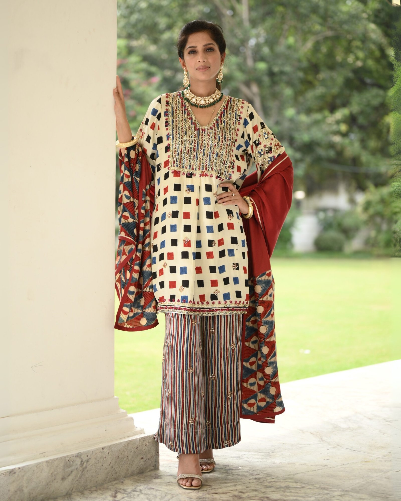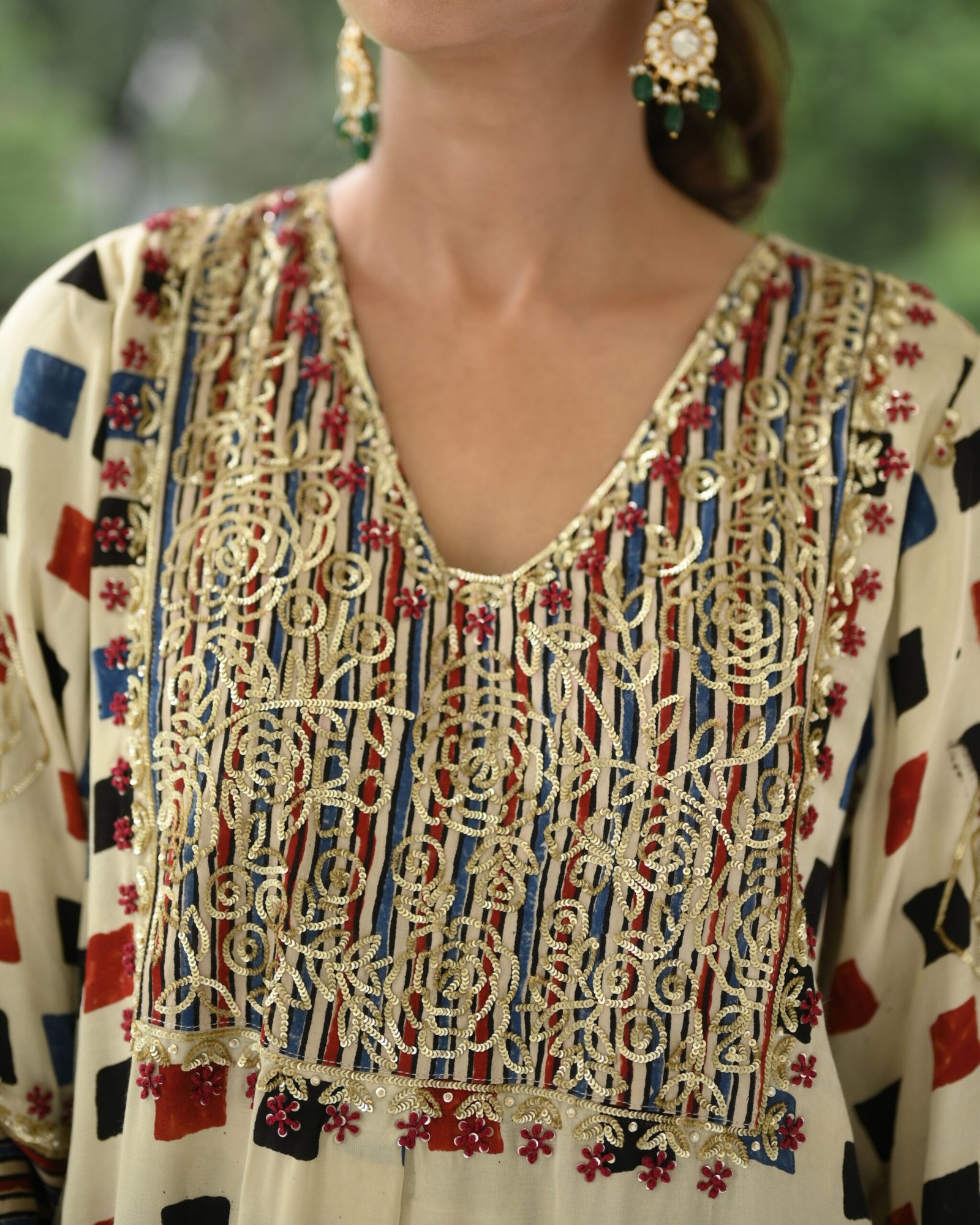 Elevate your style with the Mogra Ajrak Suit Set from our Raabta Collection. Crafted in luxurious silk modal satin with malmal lining, this set features exquisite handwork with dabka, sequins, and thread detailing. Available with or without dupatta, it’s perfect for festive occasions or special gatherings