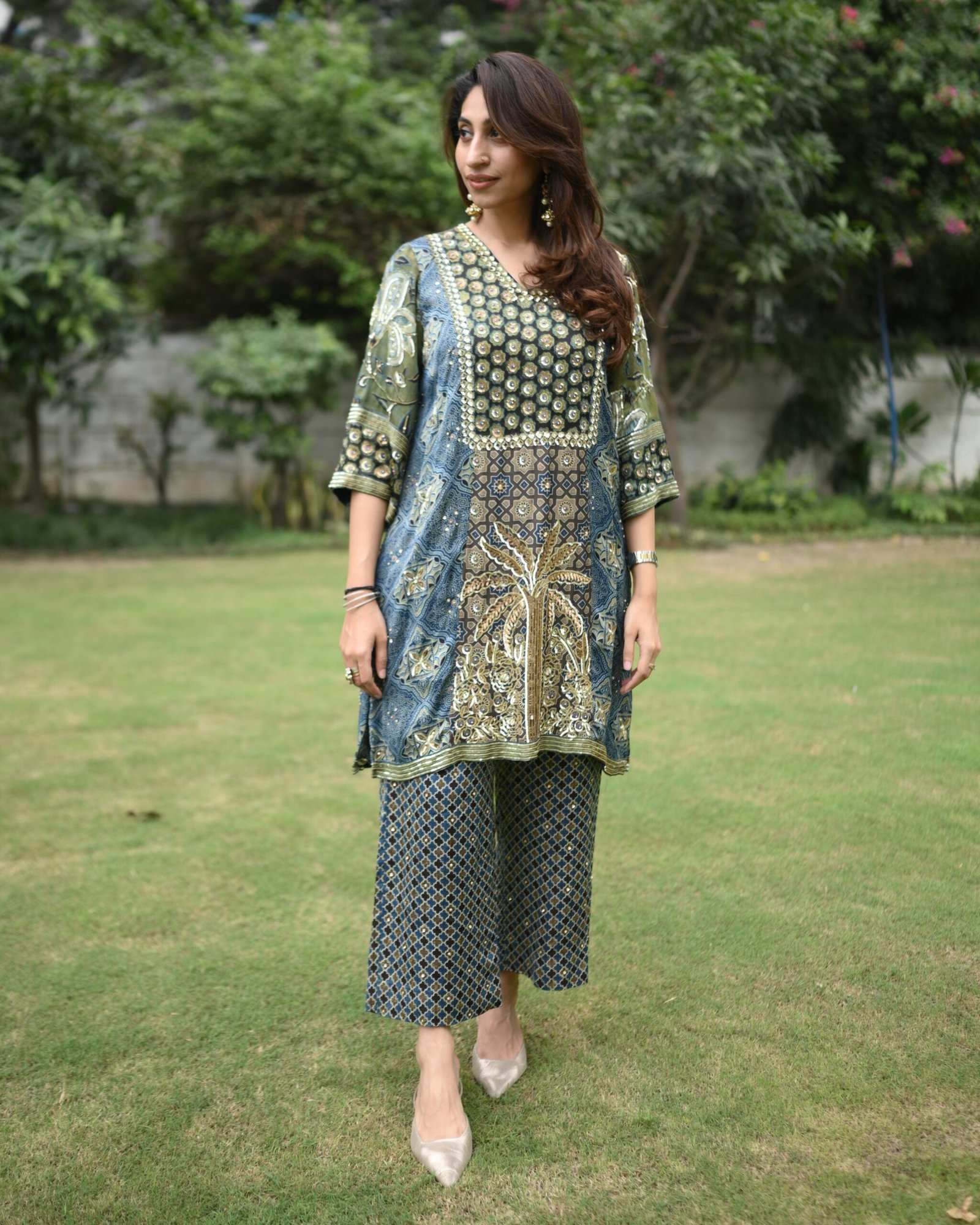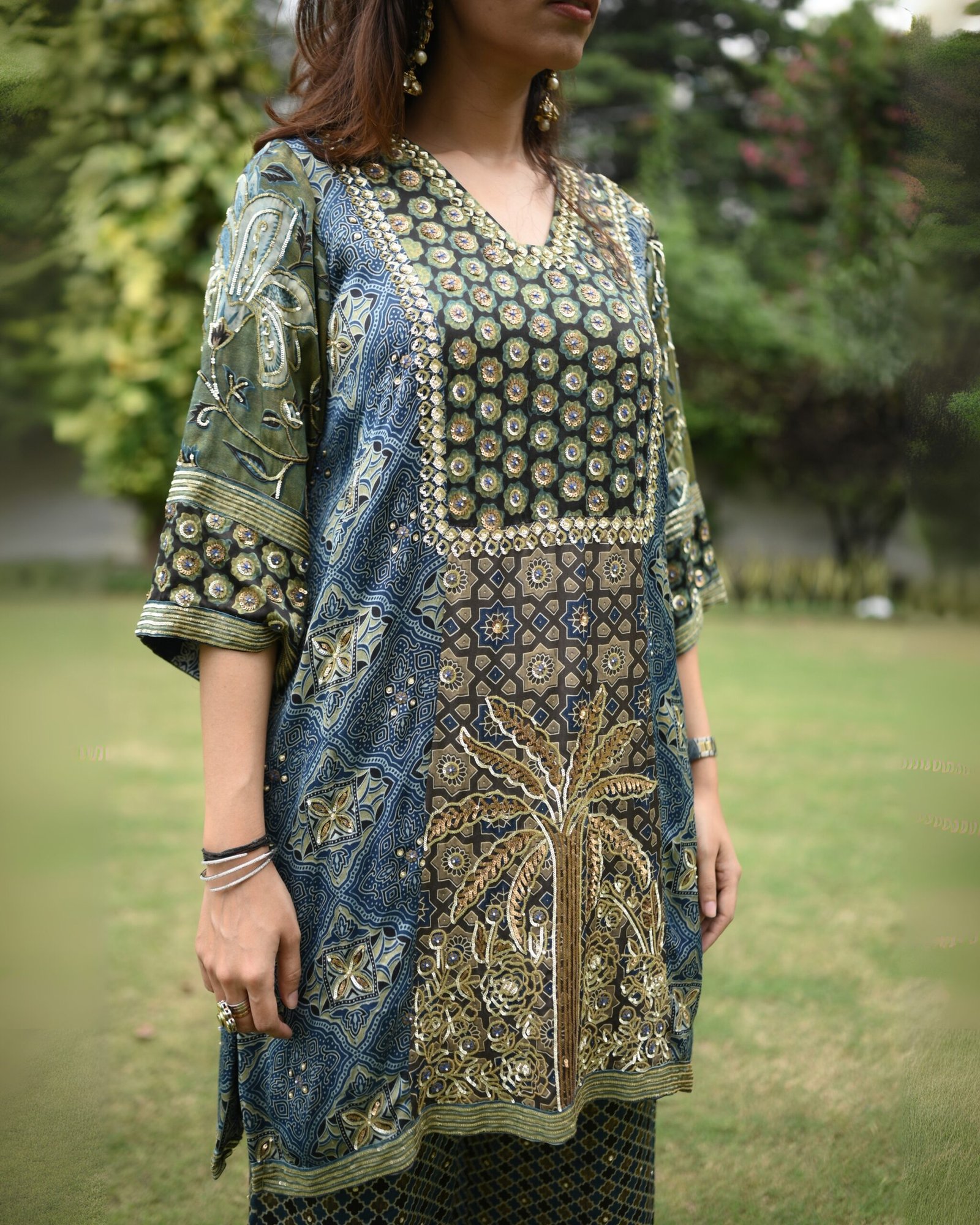 • Handcrafted detailing: Intricate dabka, sequence, and thread work
