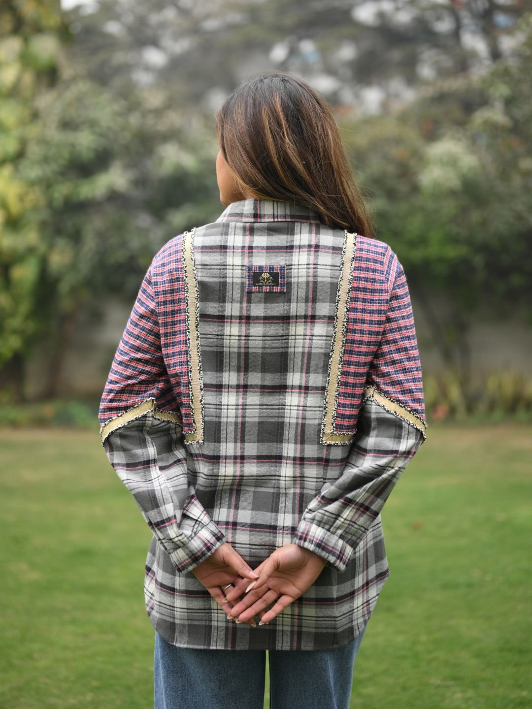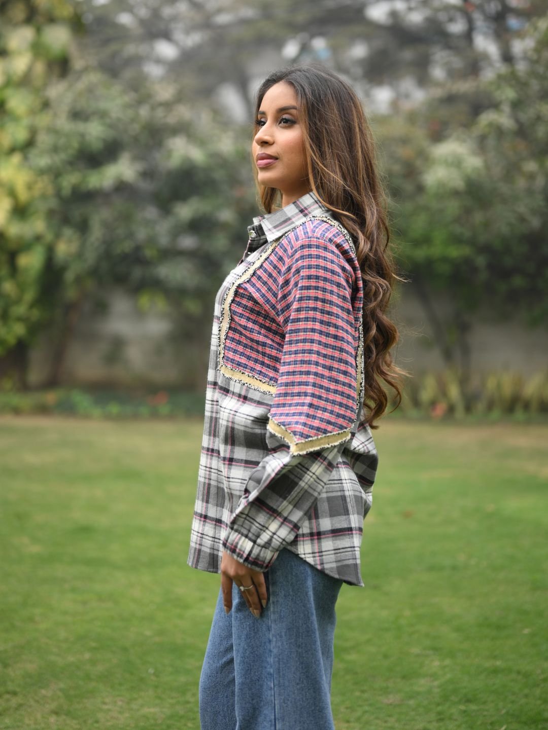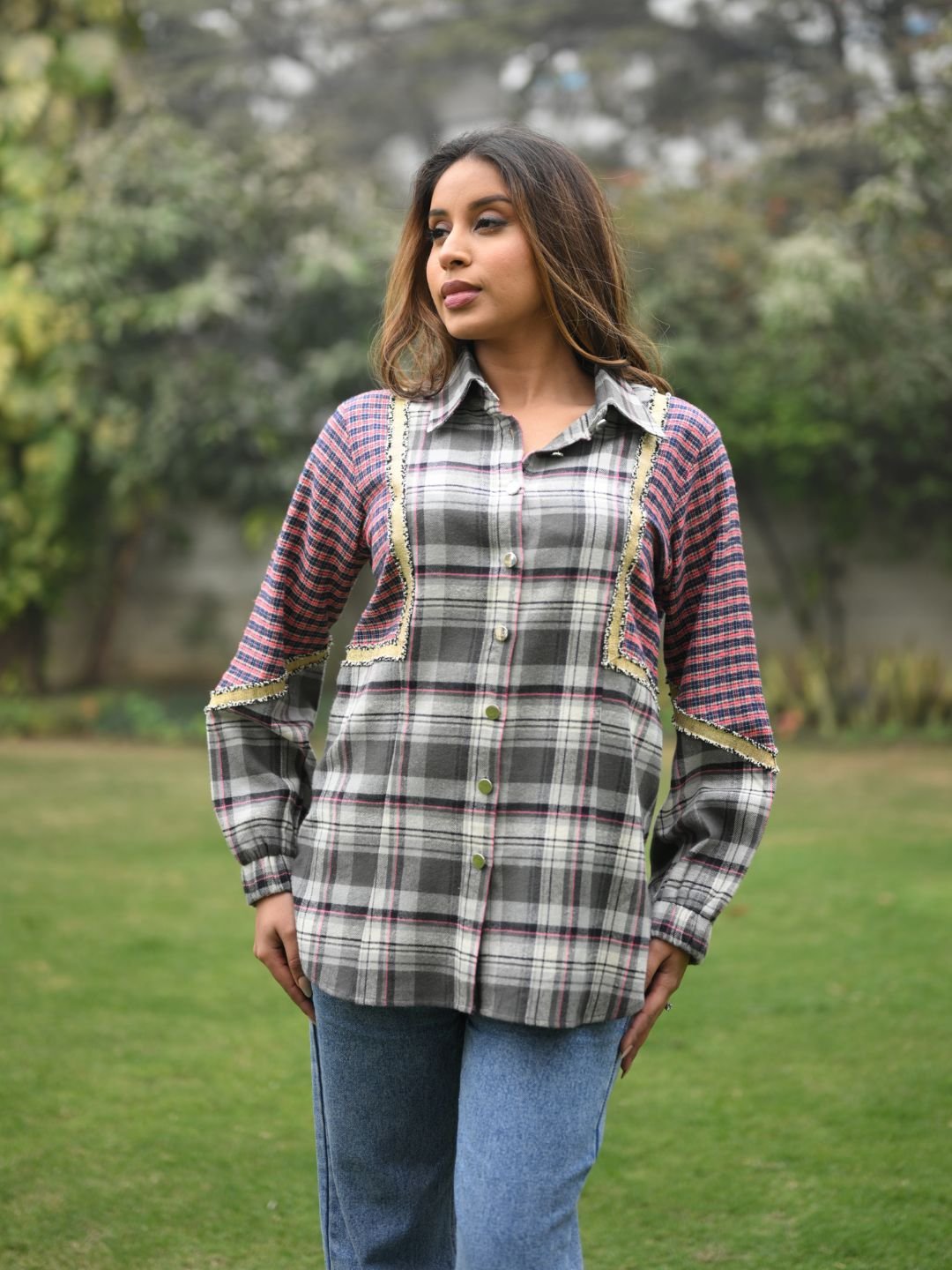 The Retro Fusion Check Shirt from the Everyday with N&S Collection brings together vintage charm and modern style. Made from soft twill cotton, it features a classic check pattern enhanced with metallic buttons and subtle golden lace detailing. Designed for everyday wear, this shirt is perfect for casual days and smart-casual occasions with effortless flair.