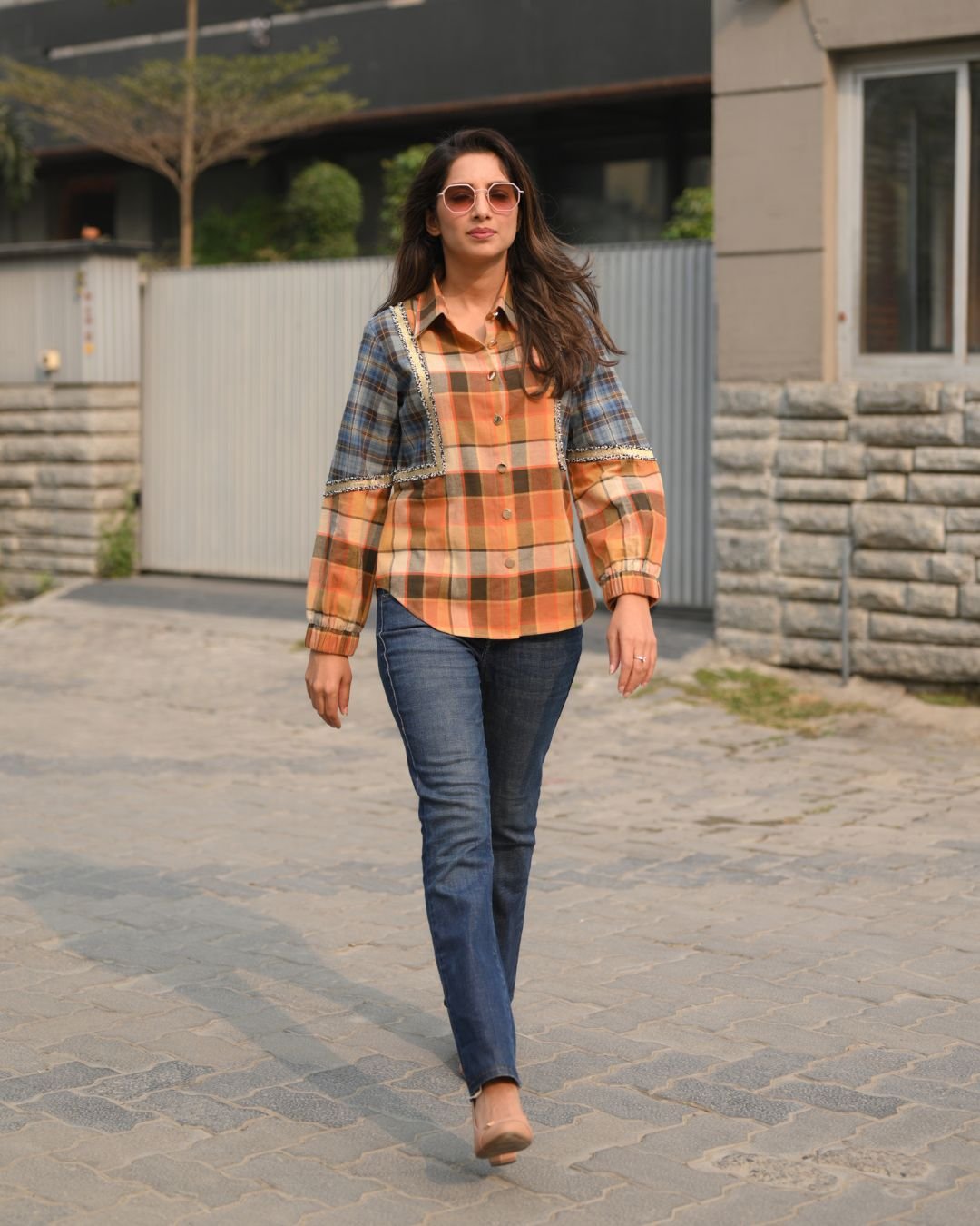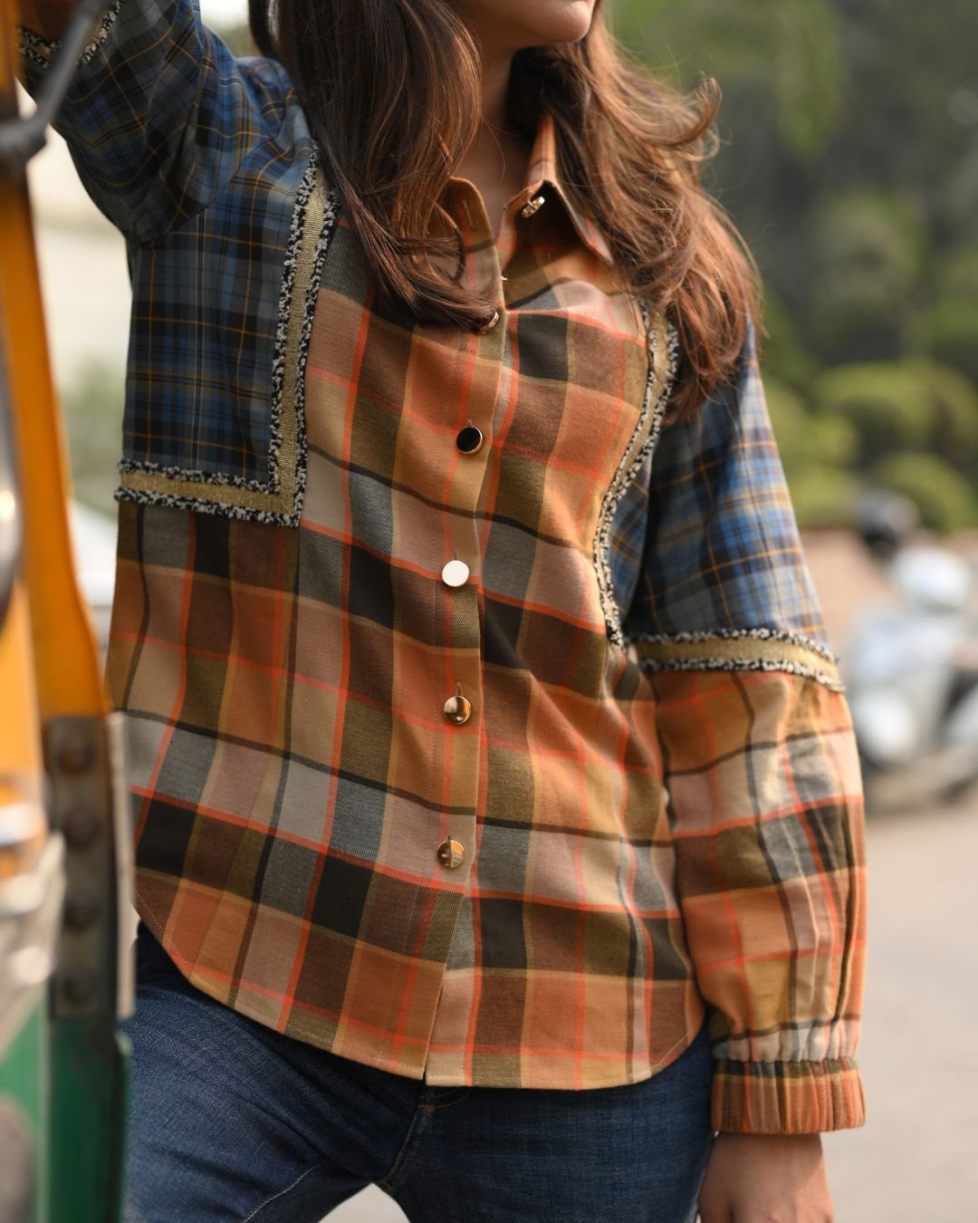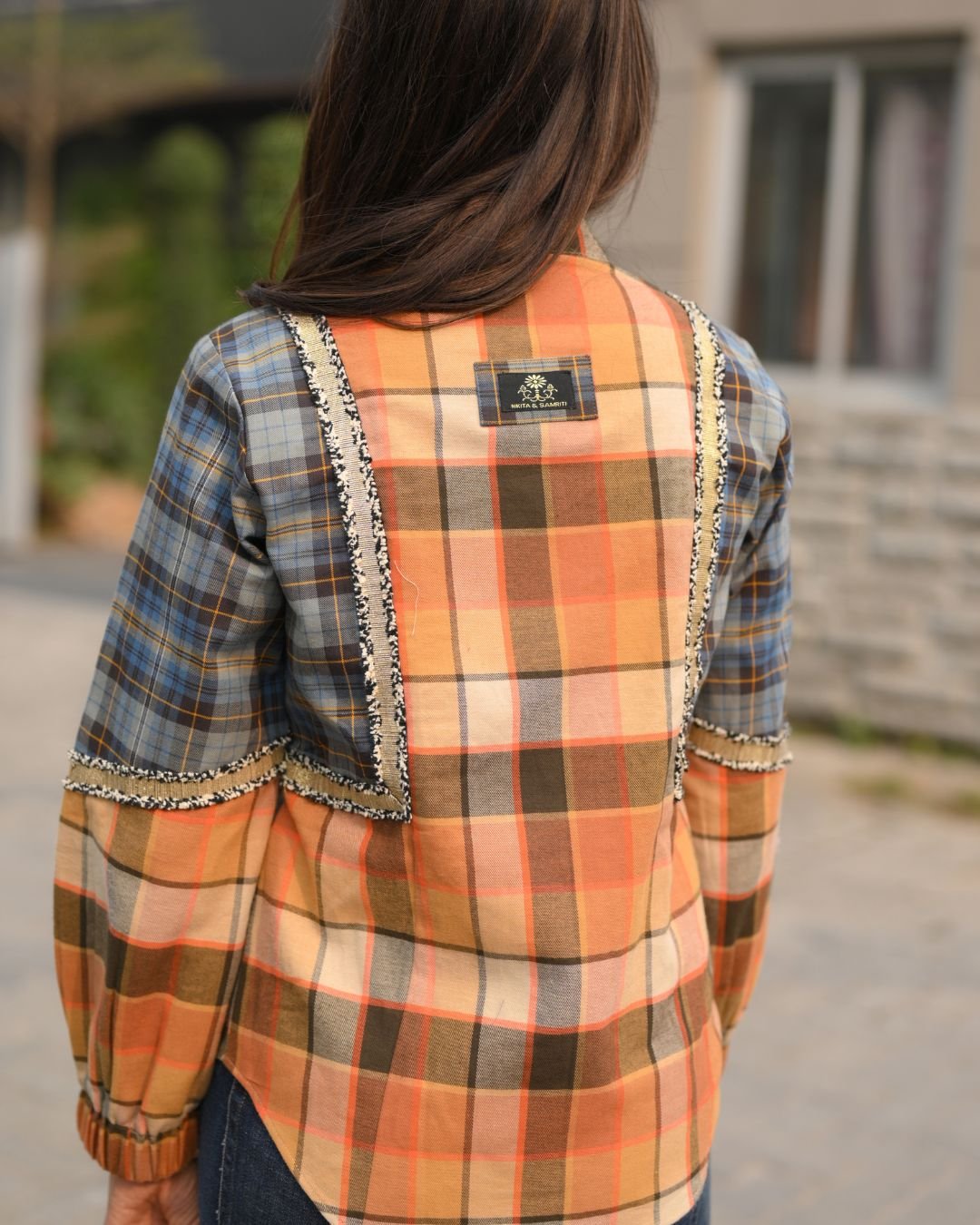 The Sun Kissed Check Shirt is crafted from soft twill cotton, offering comfort with a tailored feel. Designed with metallic buttons and highlighted with golden lace detailing, this shirt adds a refined, stylish touch to a classic check pattern. Perfect for casual outings or smart everyday looks, it blends warmth, texture, and modern design effortlessly.